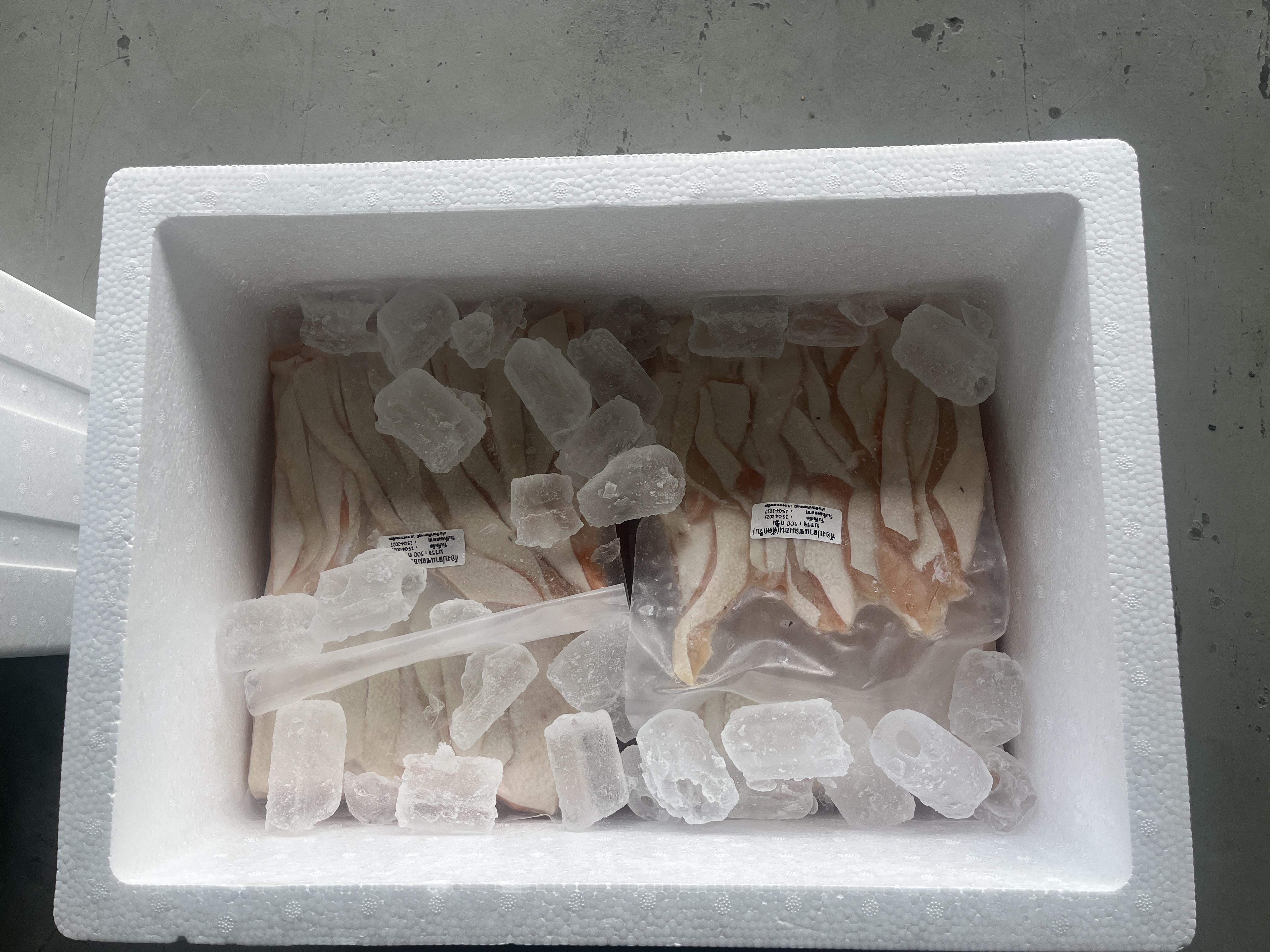 เนื้อปลากระพงแล่ครึงซีก แช่แข็ง น้ำหนัก 500-800 กรัมต่อชิ้น