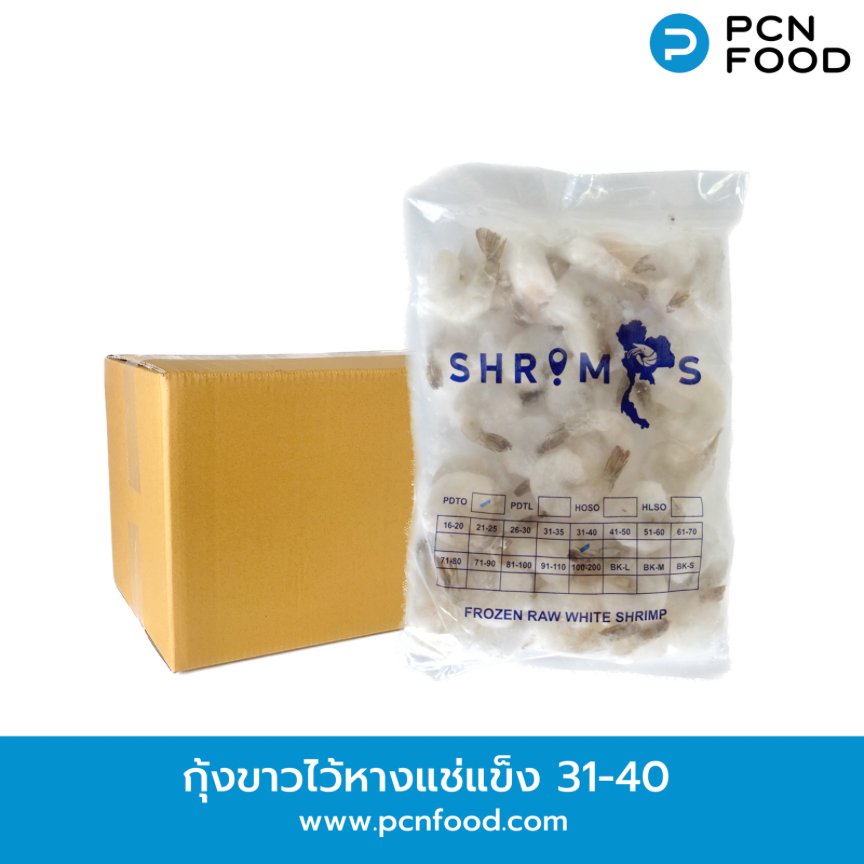 กุ้งขาวแกะเปลือกไว้หางดิบแช่แข็ง 31-40